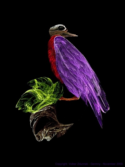 Vogel auf einem Ast mit Grün - fraktale Computergrafik.